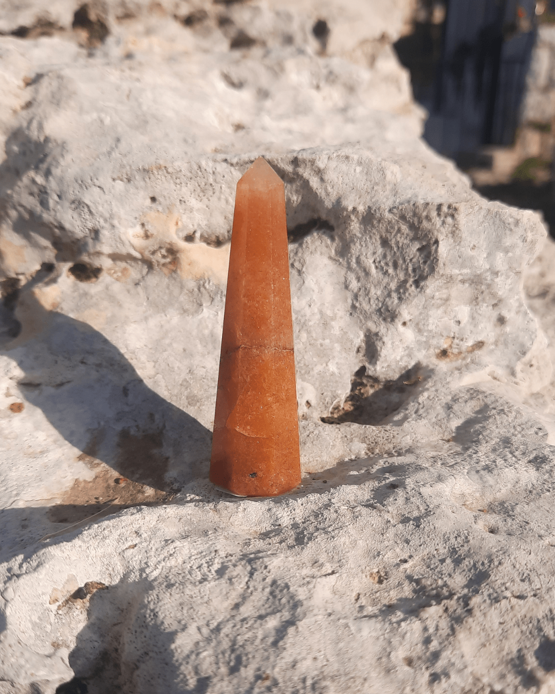 Carnelian is a potent crystal. Known as "bloodstone", it has a very high iron content, hence it is red. Carnelian promotes health and vitality, enhancing the flow of life force in the body and encouraging overall well-being.