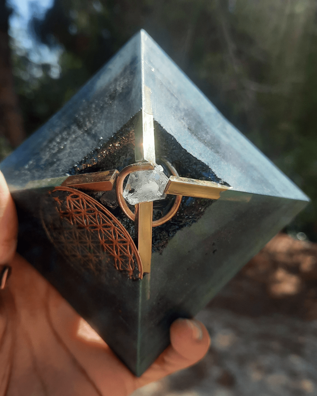 - Each pyramid is handcrafted and may vary slightly in color and material distribution due to the organic pouring process and the natural variations inherent in the crystals and materials used. These variations are normal and enhance the unique character of each pyramid, without affecting its function.